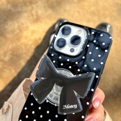 中央のリボンはスマホスタンド機能付きで、実用性も備えた一体型タイプ。コーデを選ばず、大人の手元にも自然に馴染む人気デザインです。