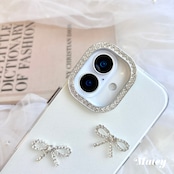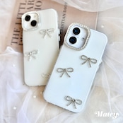 きらめくビジューでできた3つのリボンが散りばめられた、上品でフェミニンなiPhoneケース。