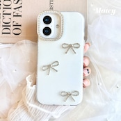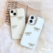 ホワイトグリッターリボンiPhoneケース