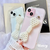 ぷっくりパールで編んだ大ぶりリボングリップが主役のクリアiPhoneケース♡