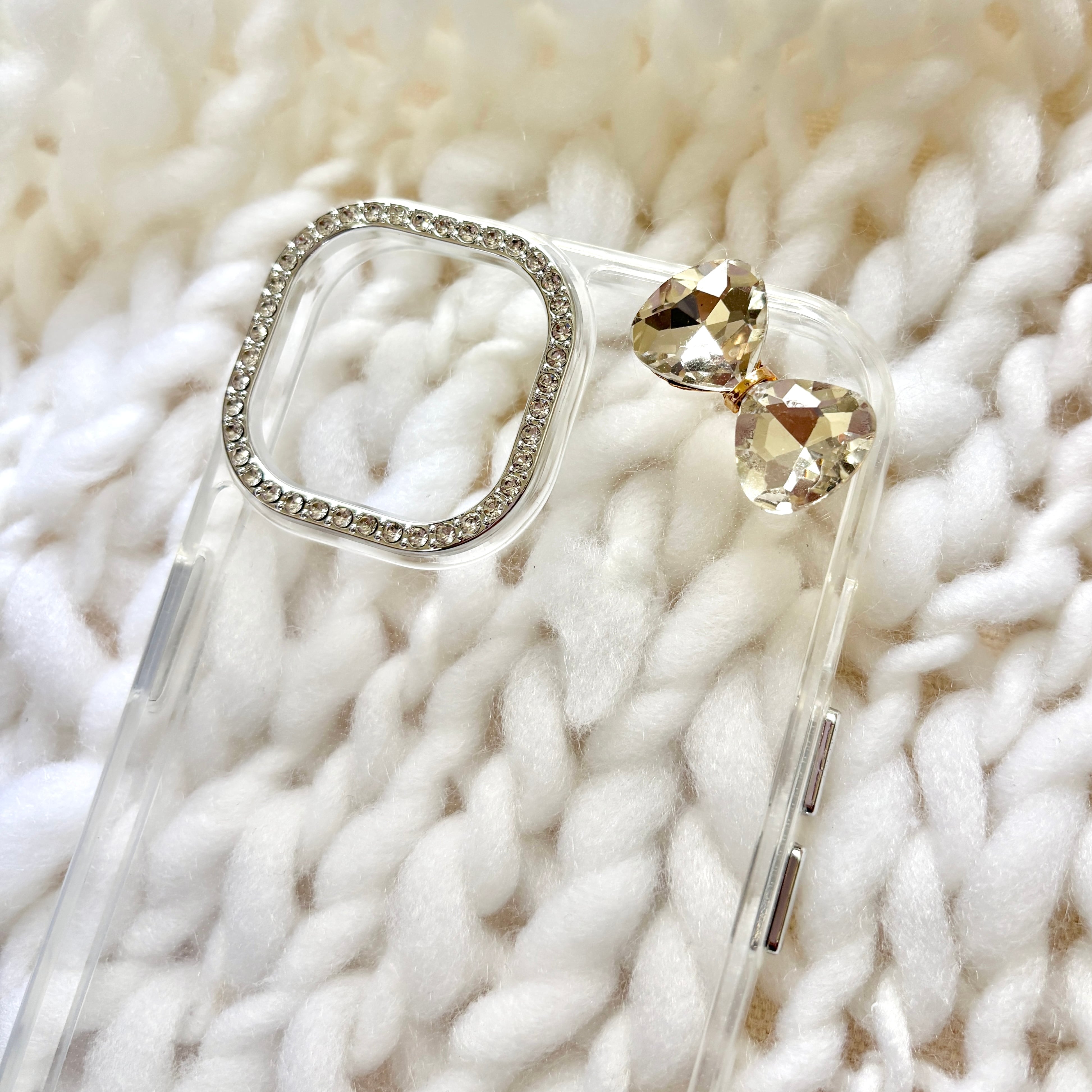 カメラ周りにはラインストーンを丁寧に散りばめ、輝きを引き立てるデザインに♡