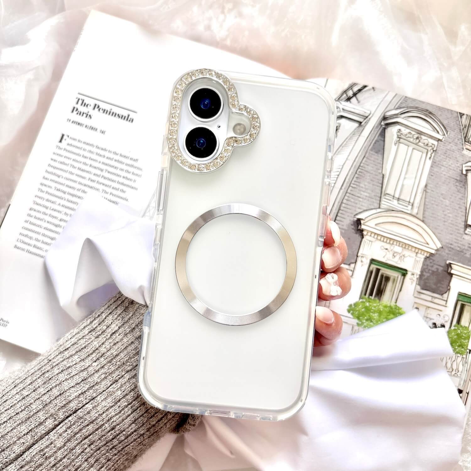 ほんのりと靄がかったフロストクリア素材が、やわらかな光をまとって手元に上品な印象を添えるMagSafe対応 iPhoneケース。