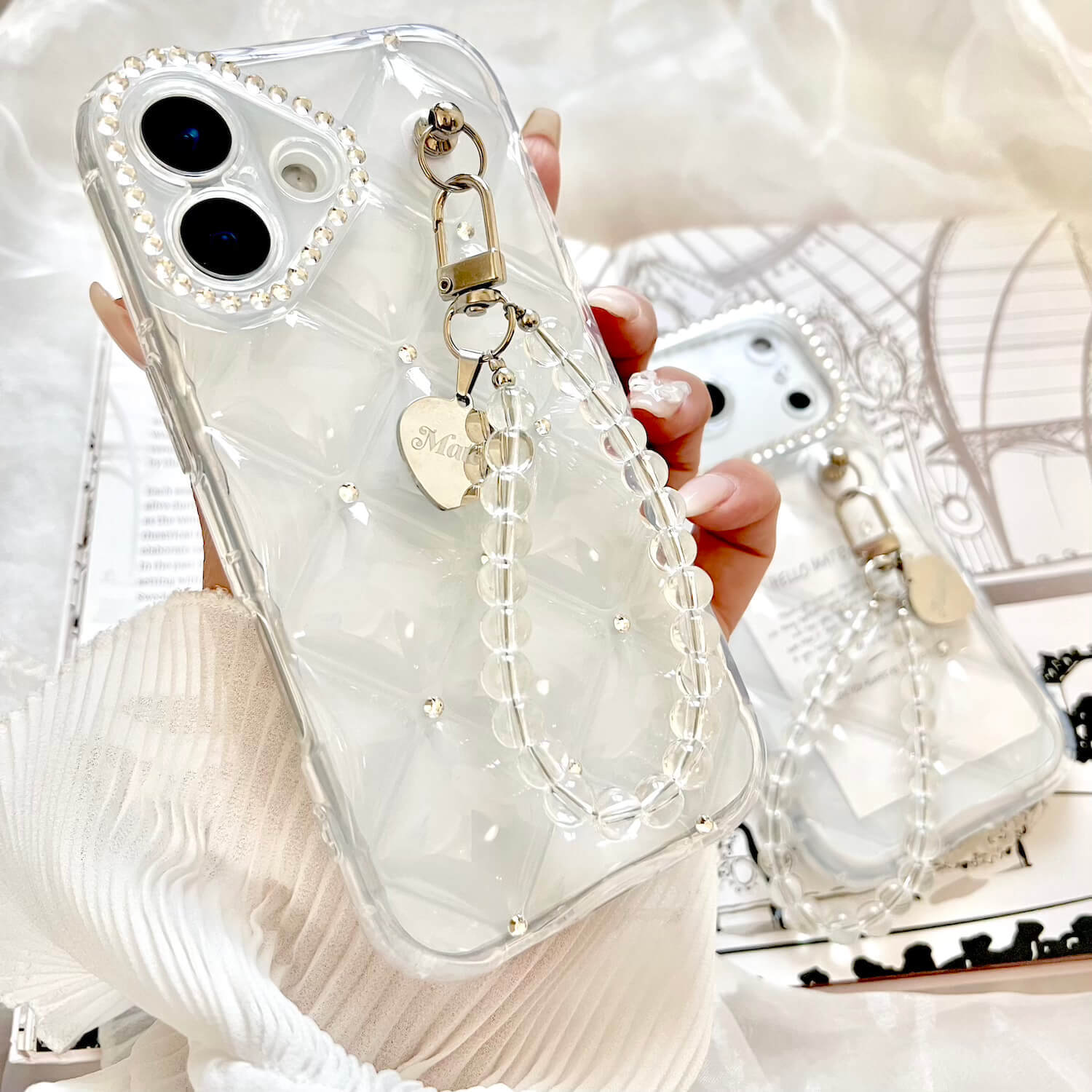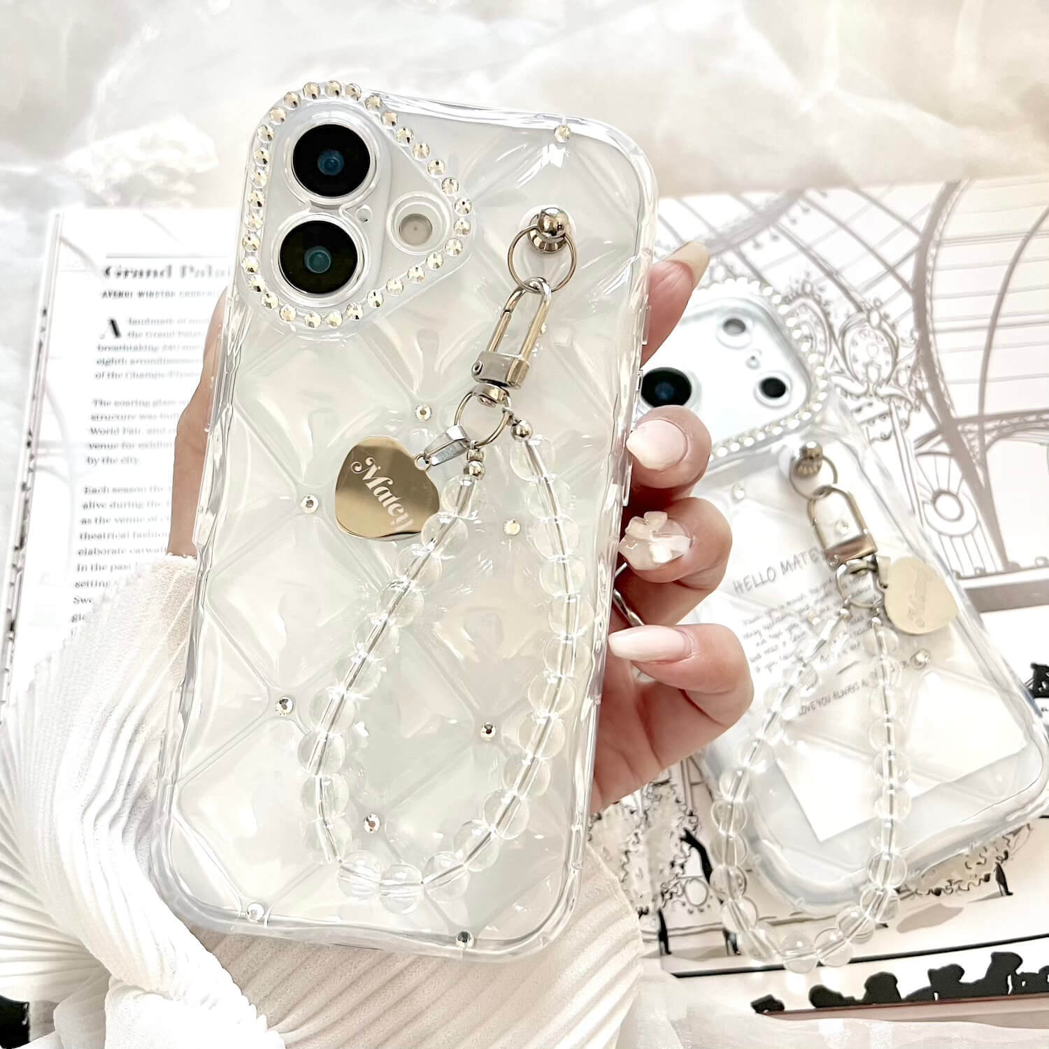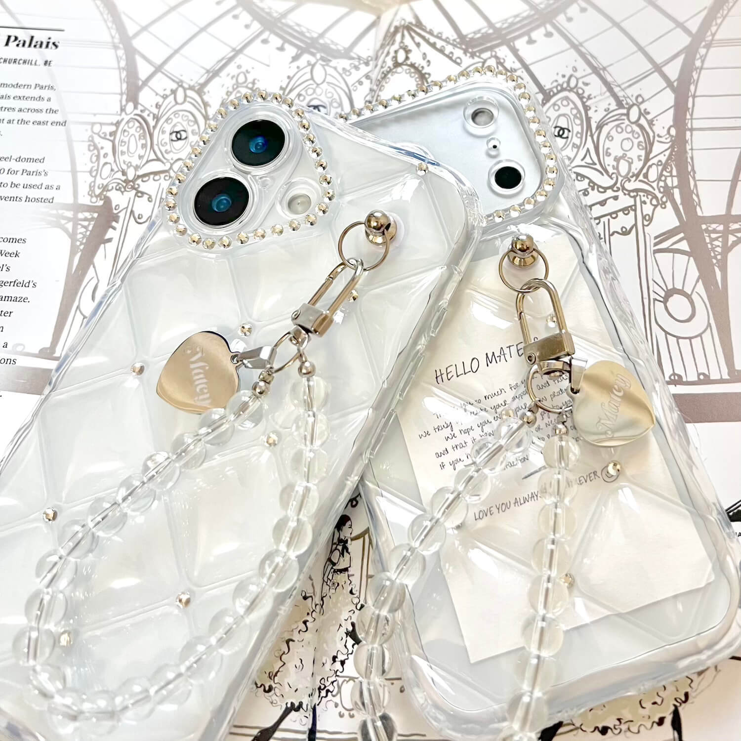 透明感のあるクリア素材に立体的なツヤを加えることで、上品さと可愛らしさを両立したキルティングデザインに。