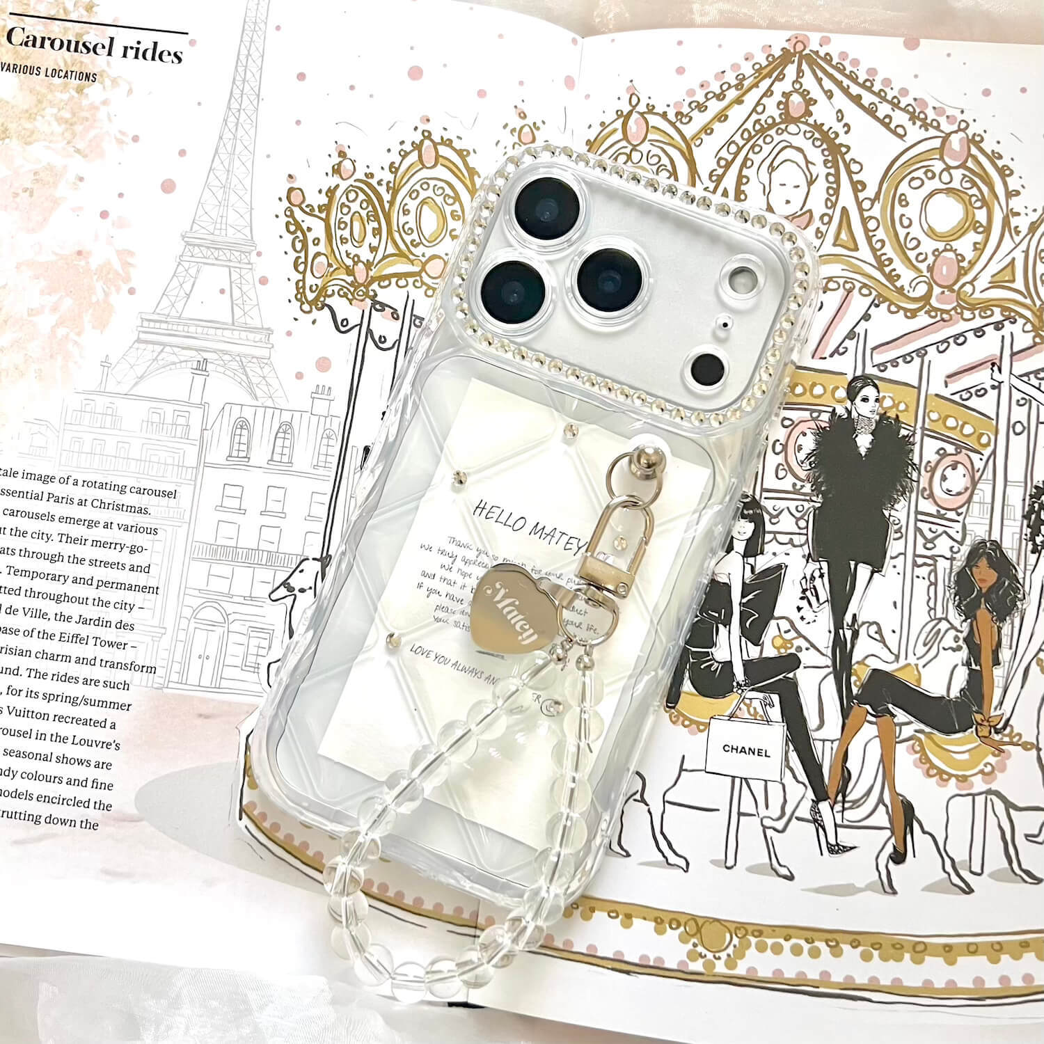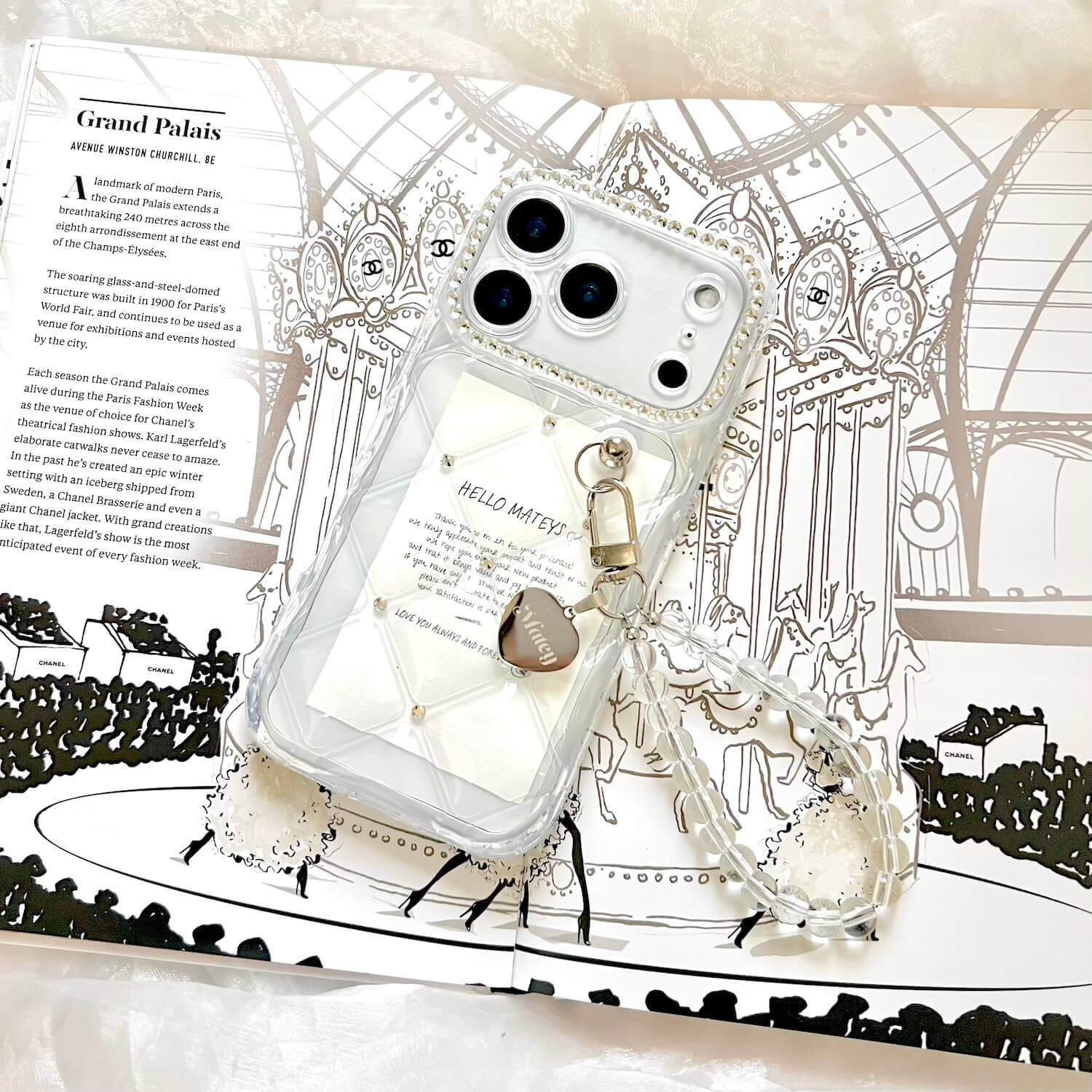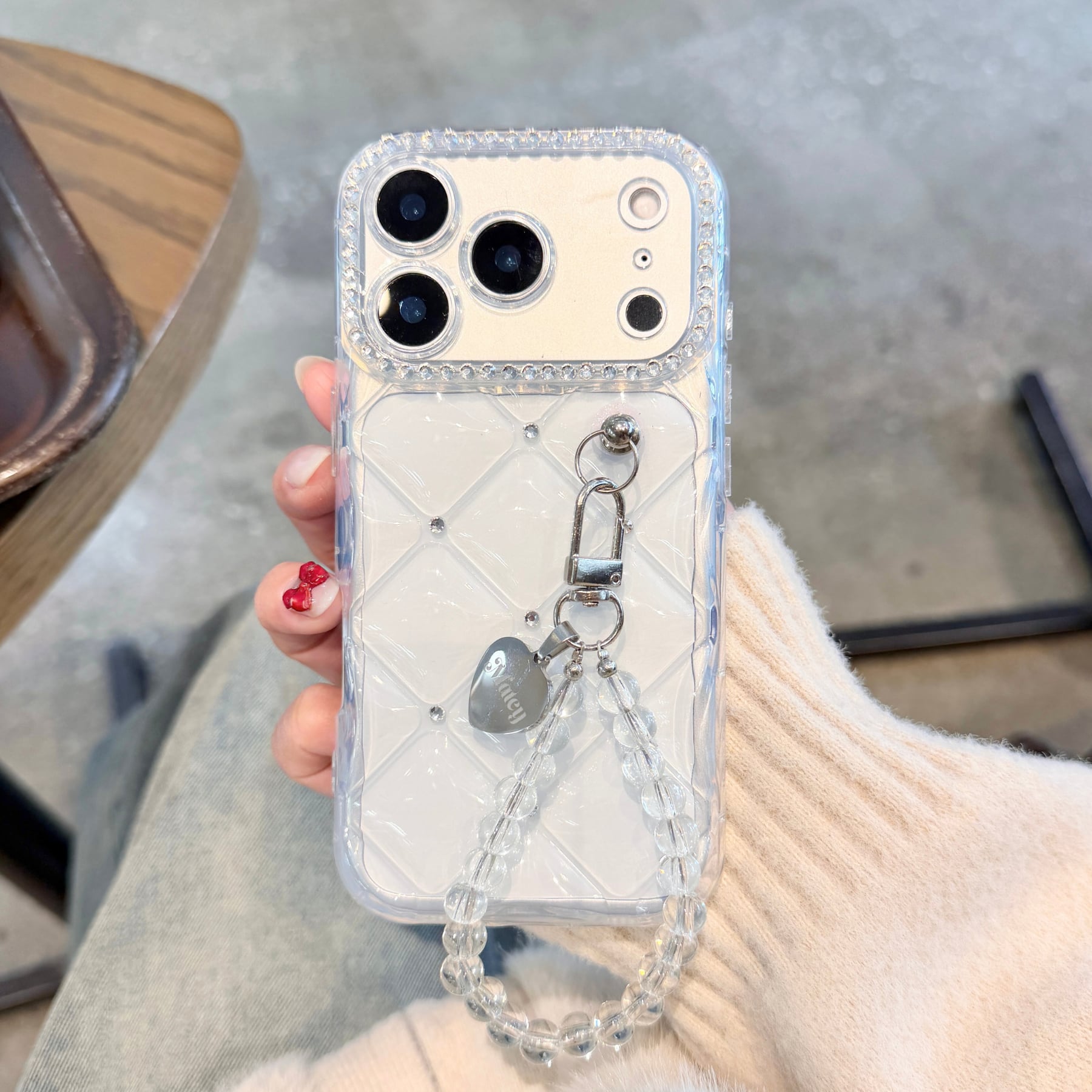 透明感のあるクリア素材に立体的なツヤを加えることで、上品さと可愛らしさを両立したキルティングデザインに。