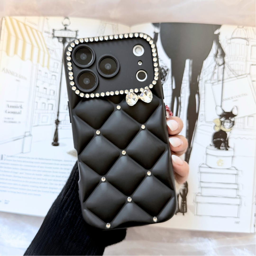 《OUTLET価格》パフキルテッドリボンiPhoneケース|ブラックローブ