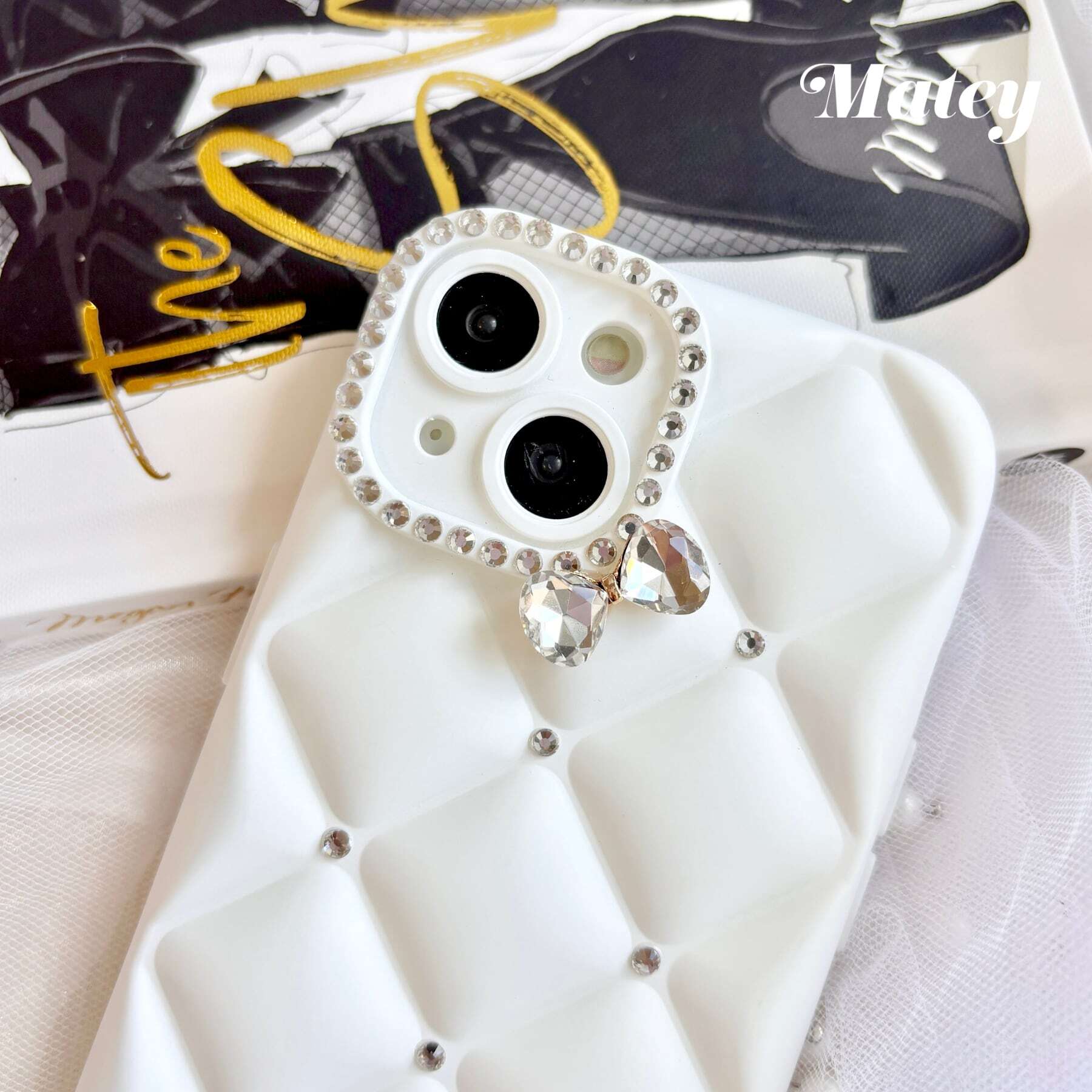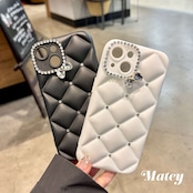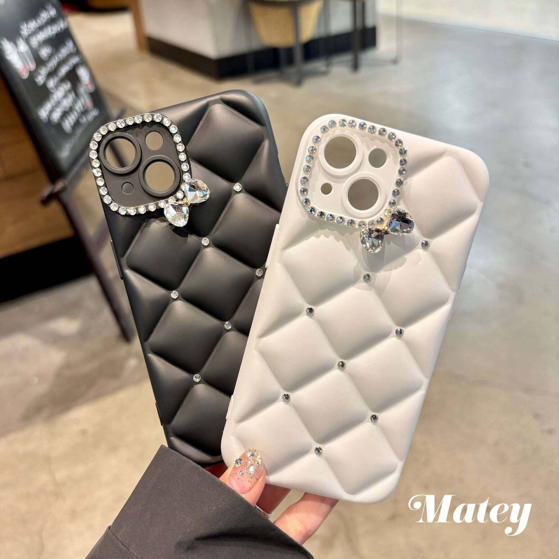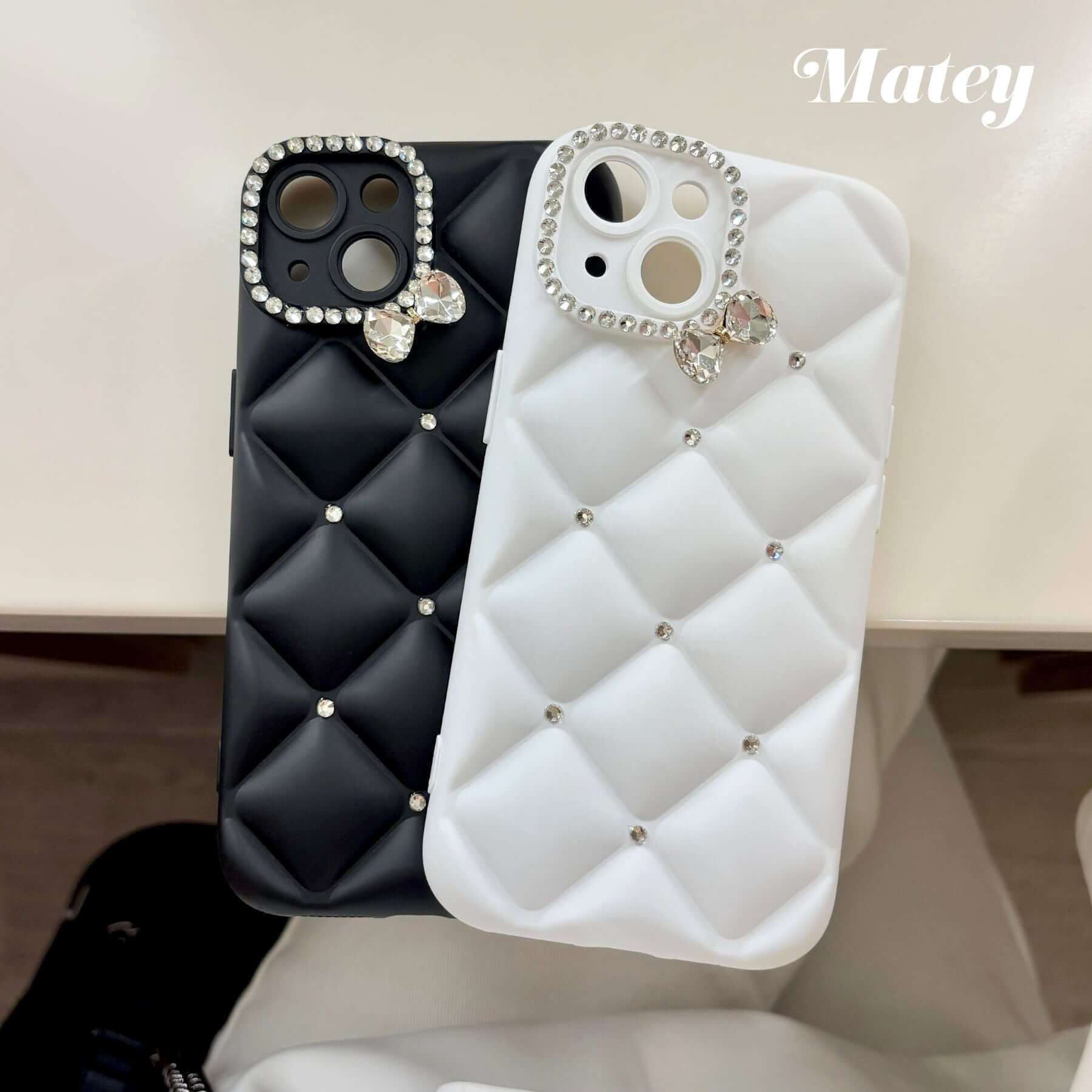 ぷっくりとしたキルティングに、繊細に輝くビジューとリボンモチーフを添えた、フェミニンな魅力たっぷりのMateyオリジナルケース。