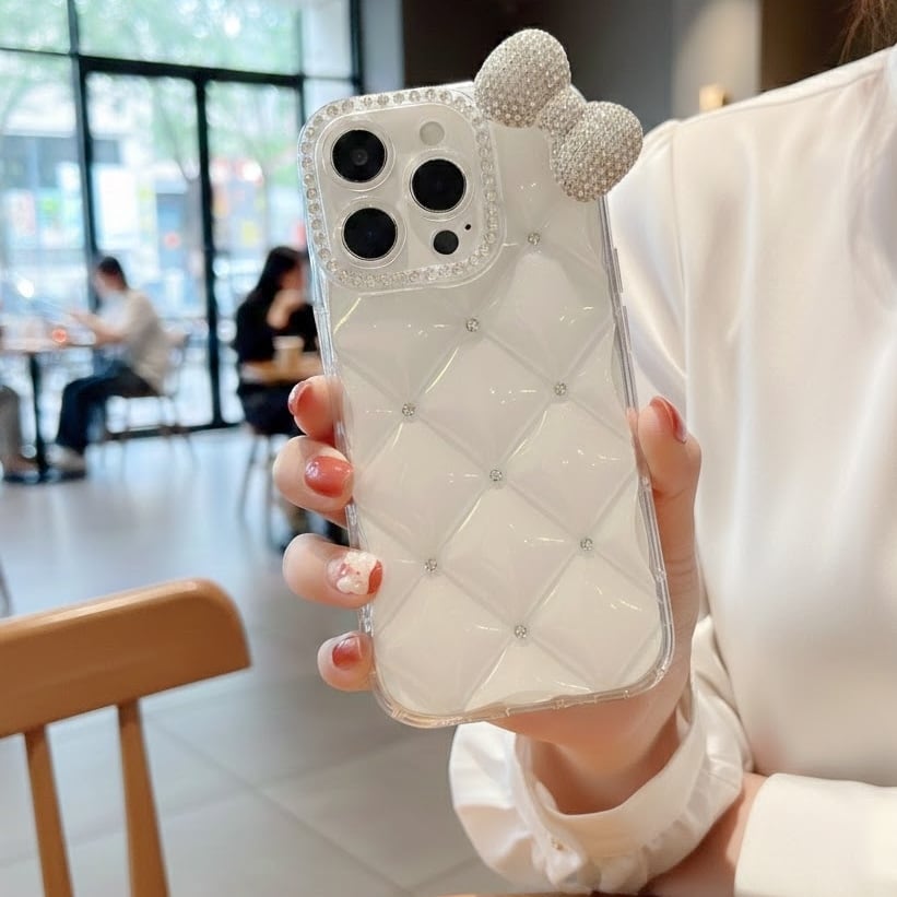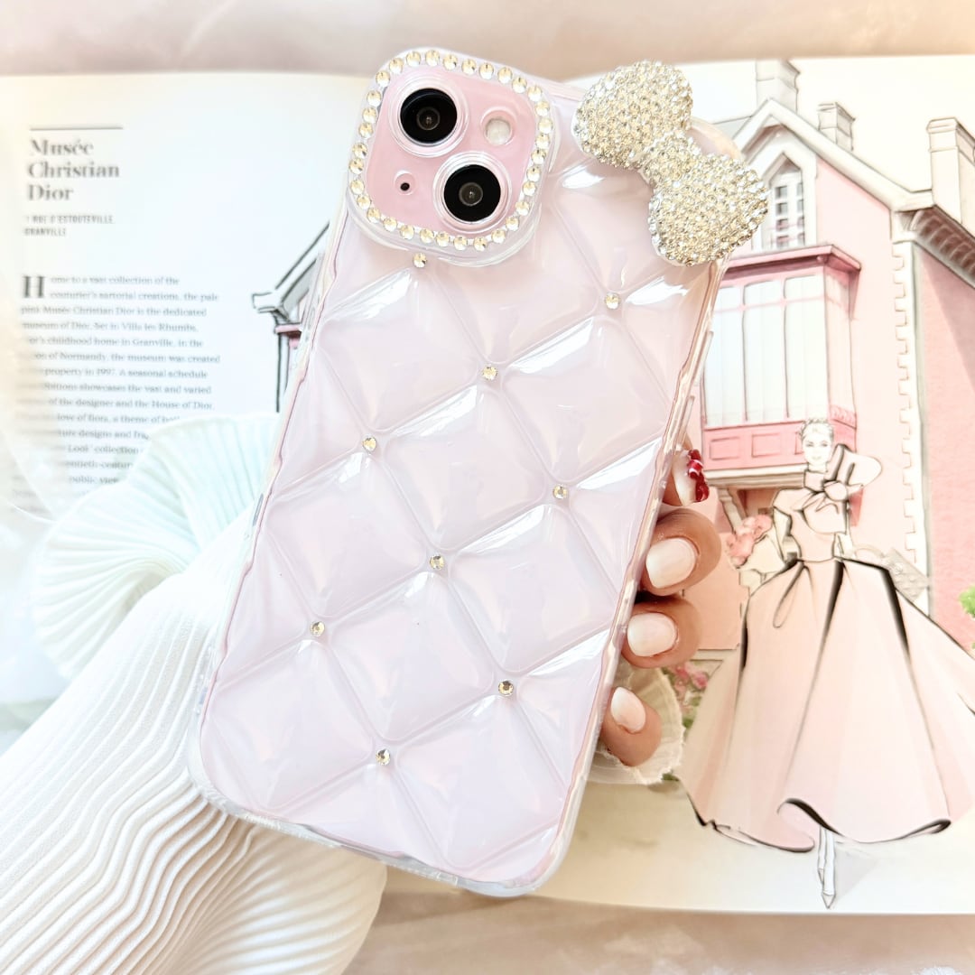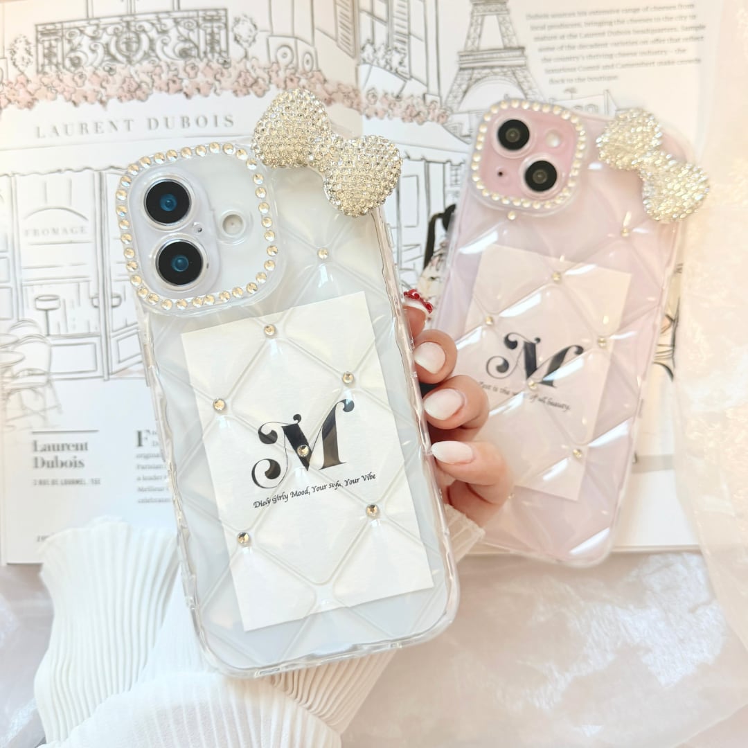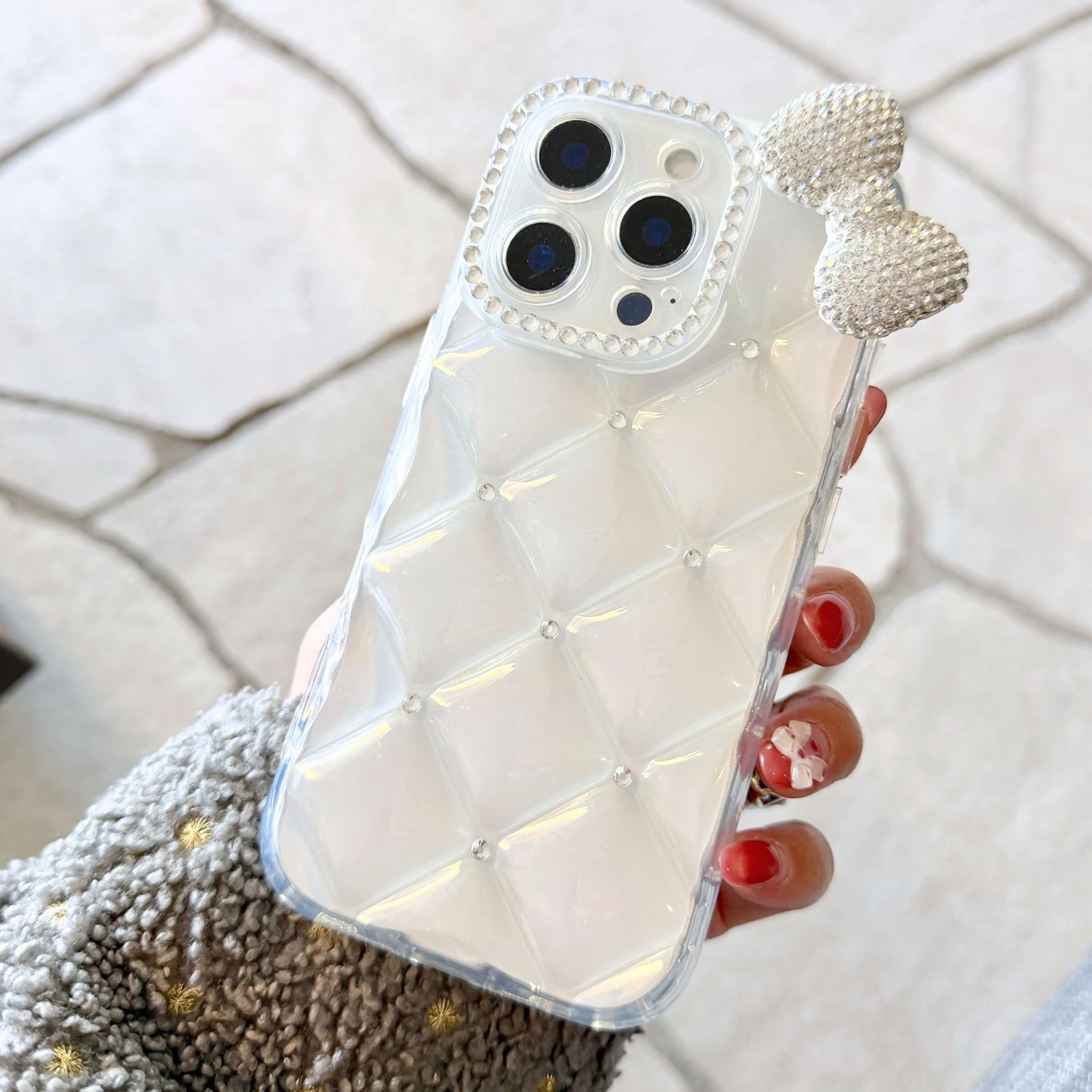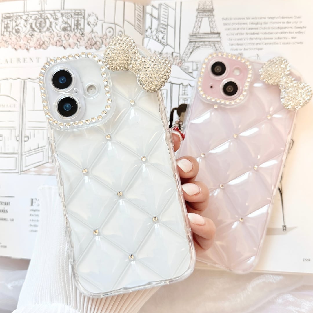 透明感のあるクリアベースに、ふっくらとしたキルティングデザインを施した「ブランリボンキルティング iPhoneケース」。