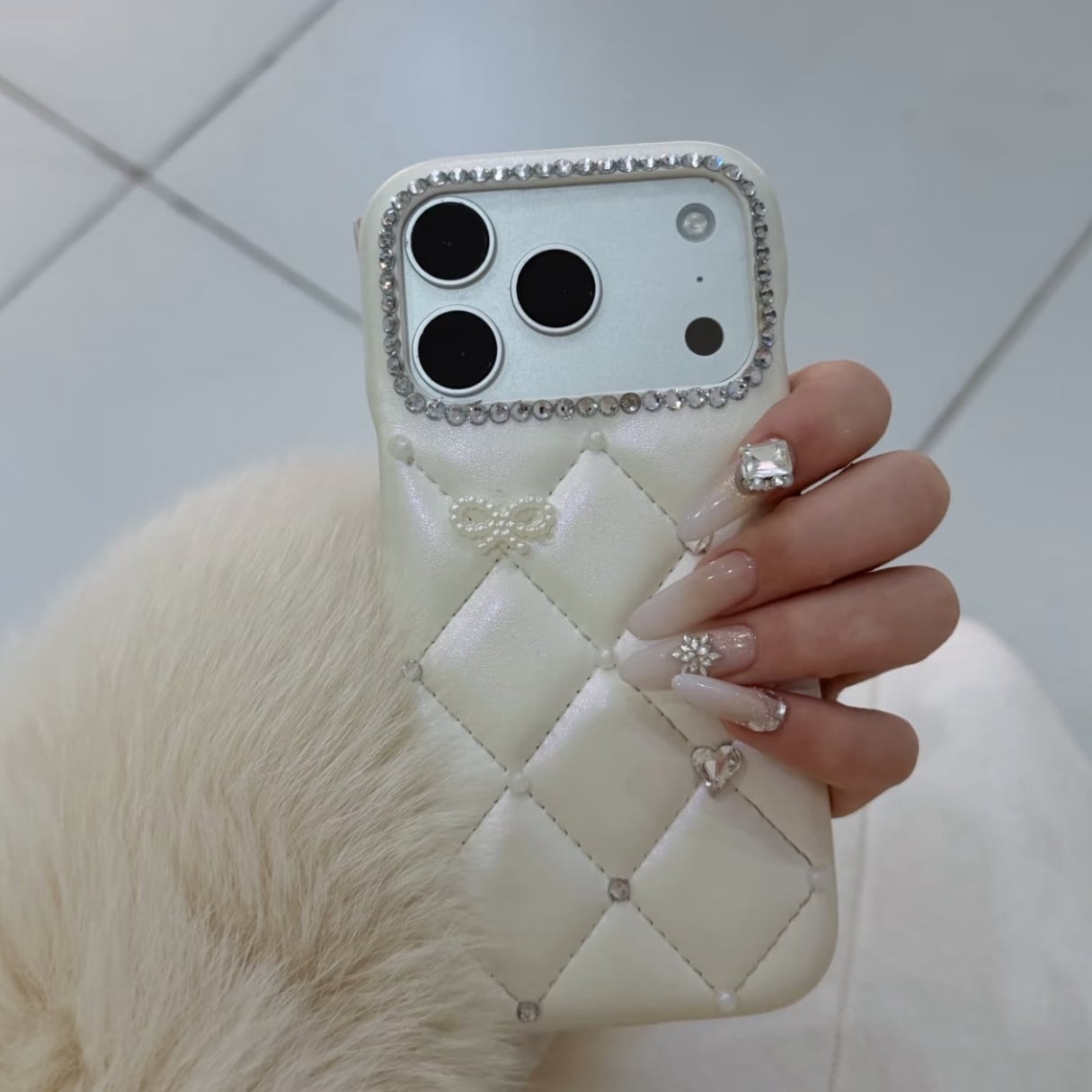 キルティングビジューホワイトiPhoneケース