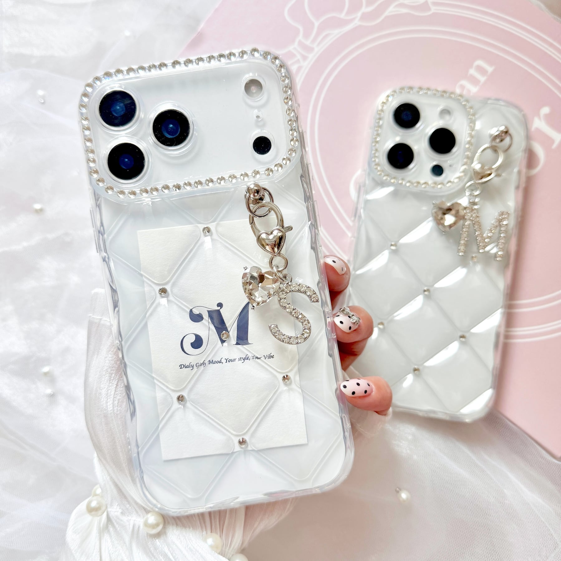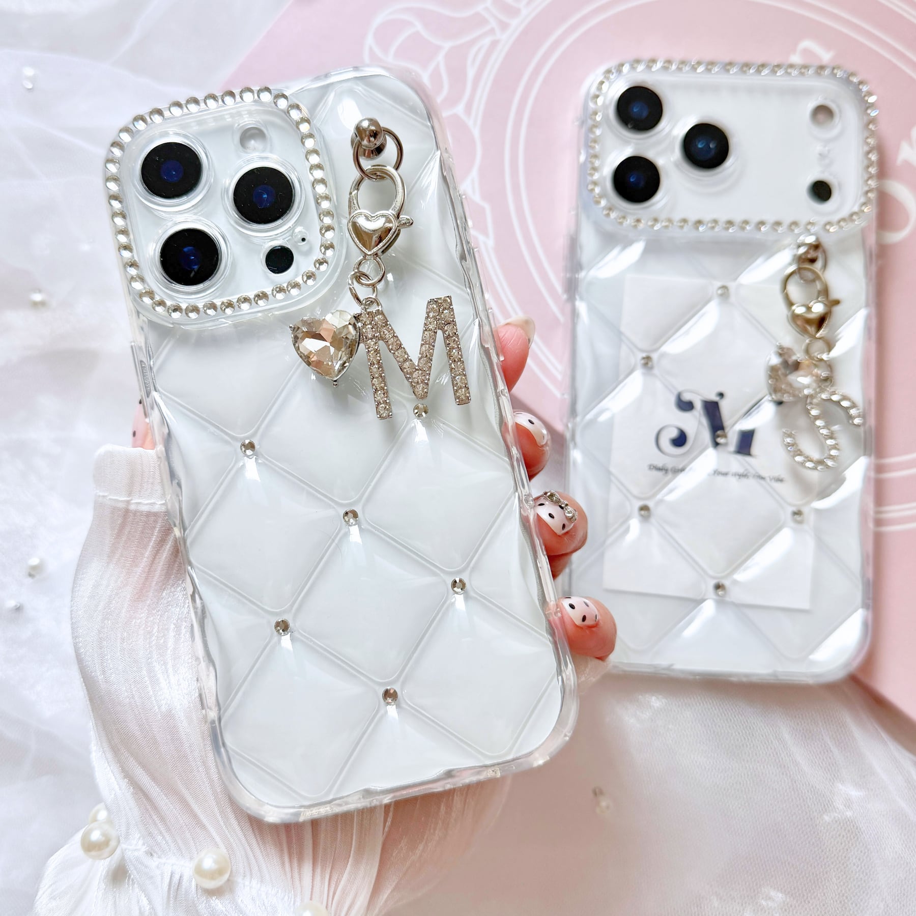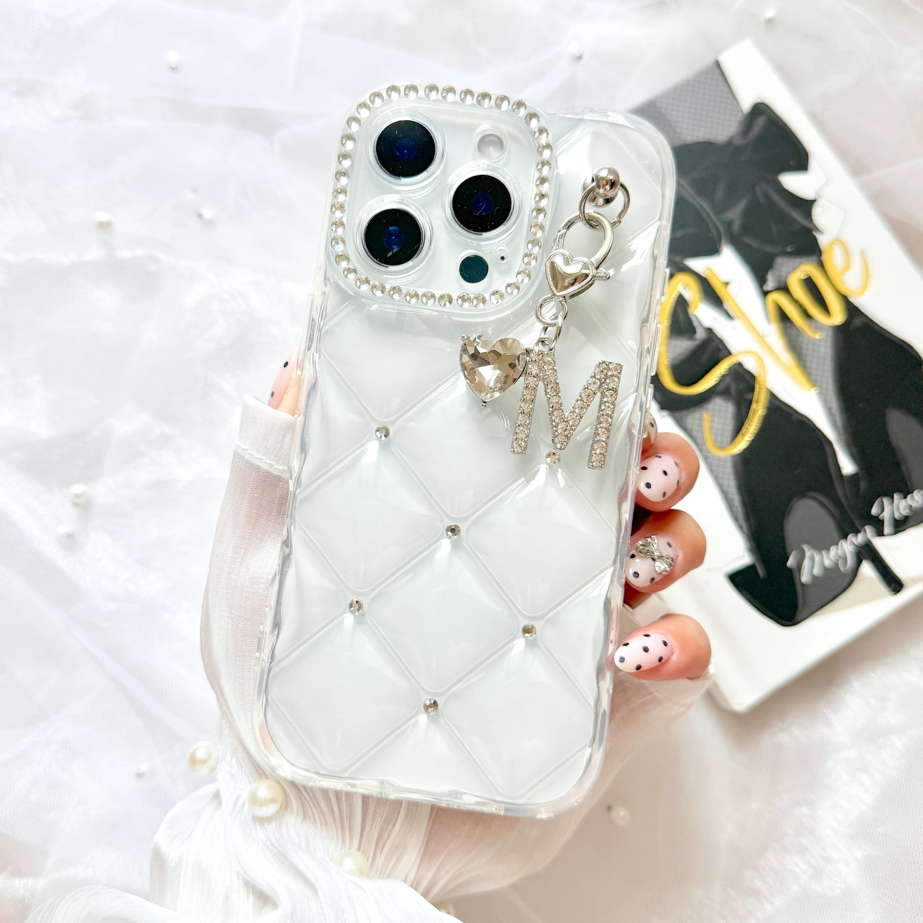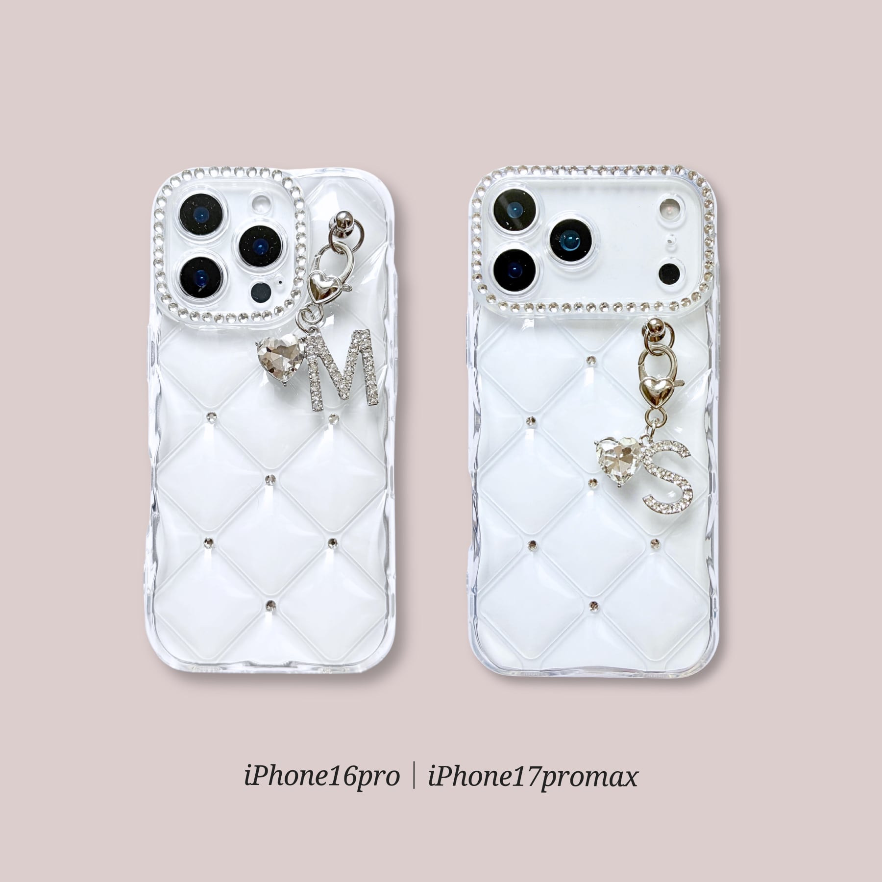 ぷっくりとしたリッチな質感のキルティングに、きらめくイニシャルをあしらって。