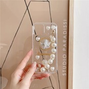 人気のクリアベースiPhoneケースに、エンジェルデザインが◎ ボリュームのあるパール付きの上品なデザインです♡