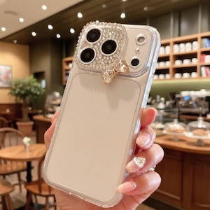 カメラ部分には繊細なラインストーンを丁寧に散りばめ、リボンモチーフが大人可愛い印象を演出。