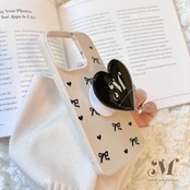 ミニブラックリボンが散りばめられたフレンチガーリーiPhoneケース。