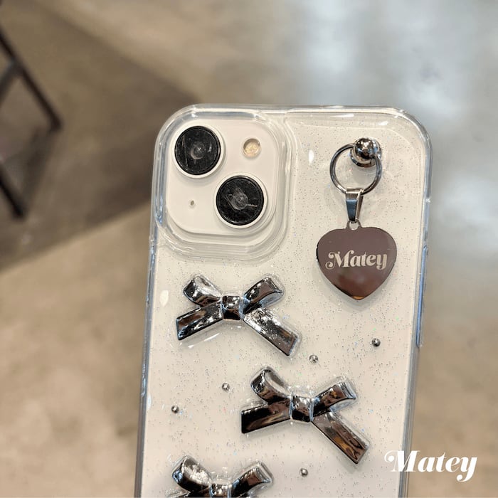 角度によってきらめくグリッターと、Mateyのオリジナルチャームが上品さをプラス。