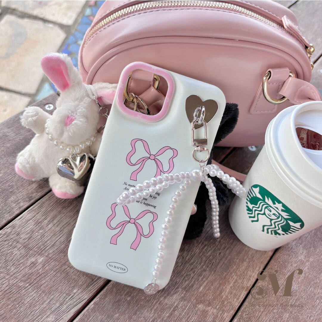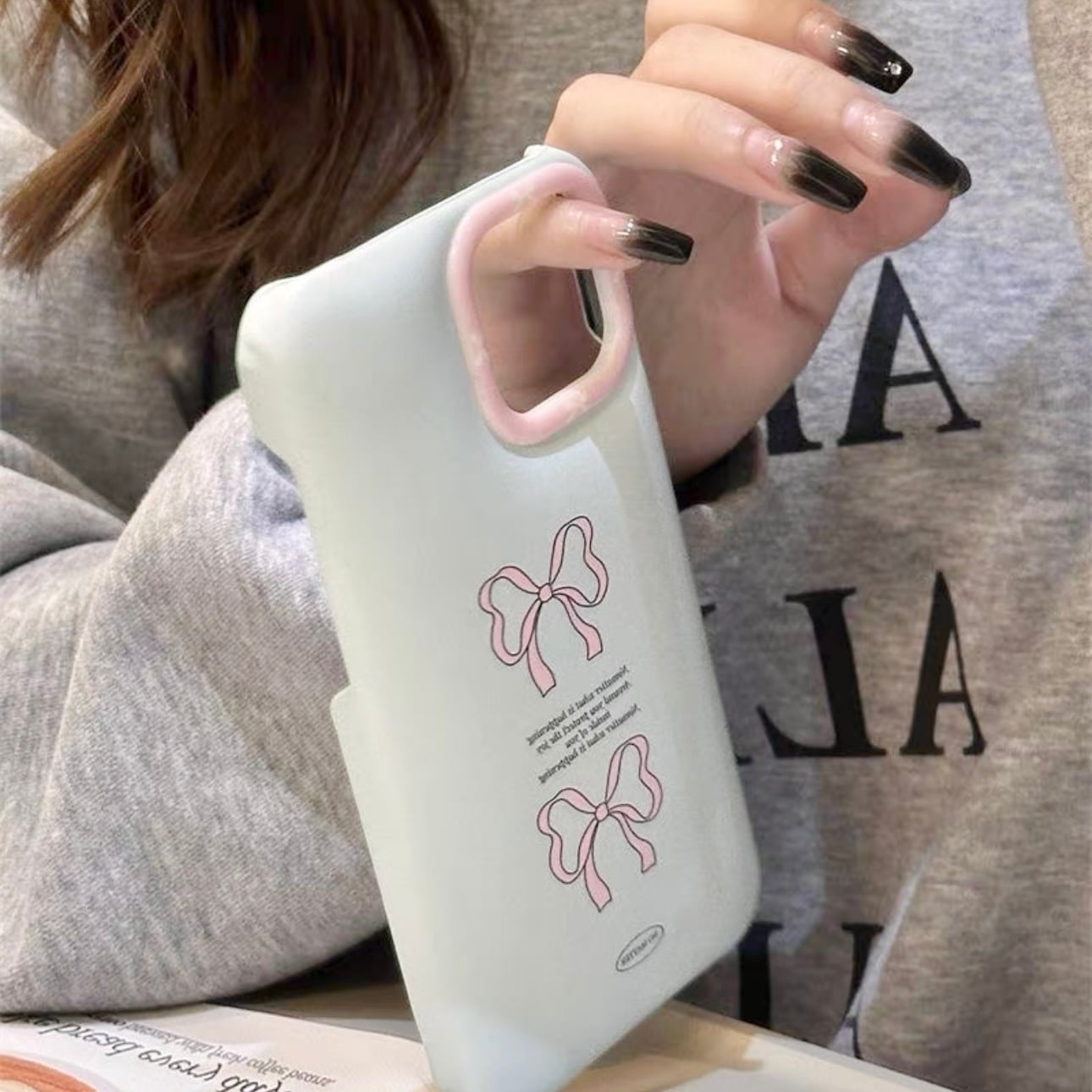 アクアティントカラーiPhoneケース♡ パールリボンがついたフレンチガーリーなデザイン♡