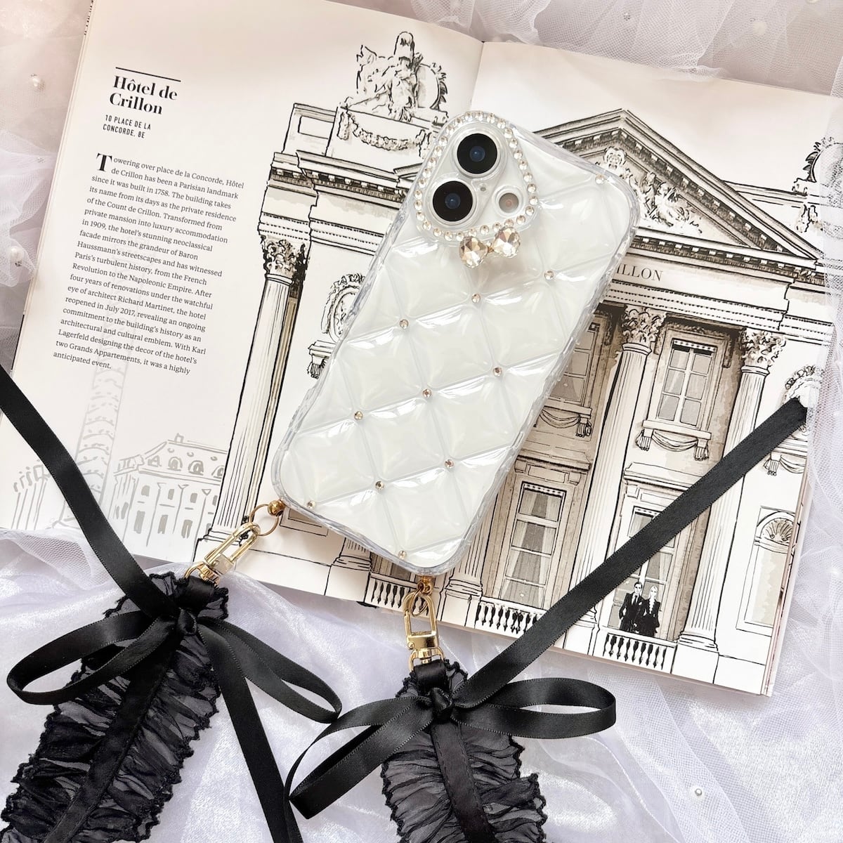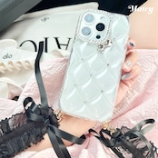 ふんわりとしたチュールストラップと、繊細なリボンがポイントの「チュールリボン iPhoneケース」。ファッションにアクセントを添える、上品でスウィートなデザインです♡