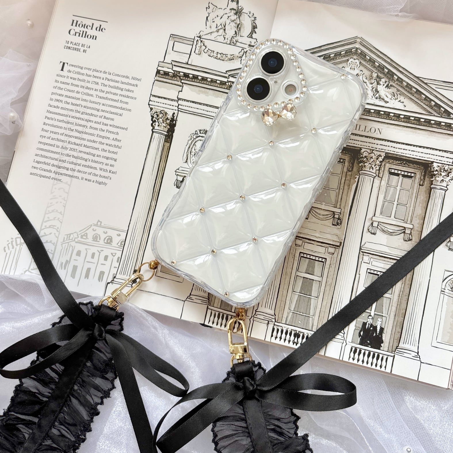 チュールストラップキルティングリボンiPhoneケース