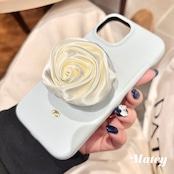 淡くやさしいブルーカラーに、ふんわりと咲くローズが目を惹くグリップ付きiPhoneケース。