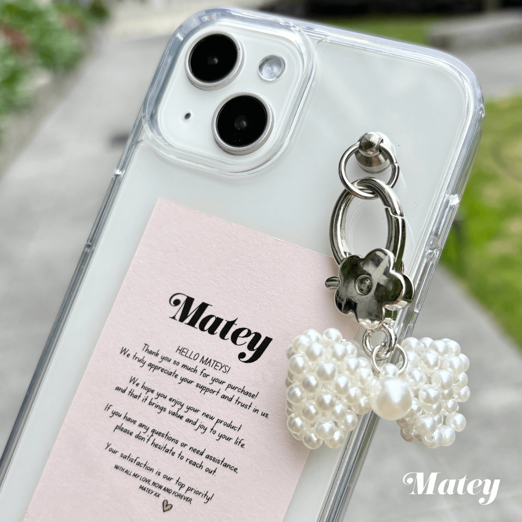 Mateyオリジナルのカードと合わせて届くので、ギフトにもおすすめ。普段使いはもちろん、お出かけやイベントにもぴったりのiPhoneケースです。