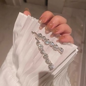 光の角度で繊細に輝くストーンが、顔まわりに上品な華やかさをプラスしてくれる大人フェミニンなヘアピン。