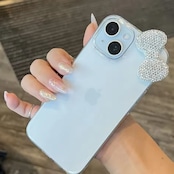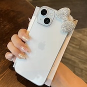 透明なクリアケースに、大粒のストーンで輝くリボンがアクセント。軽くてスリムなデザインだから、持ちやすさも抜群。シンプルな本体デザインを邪魔せず、華やかさをプラスしてくれるのがポイント♡