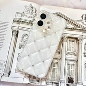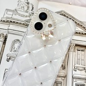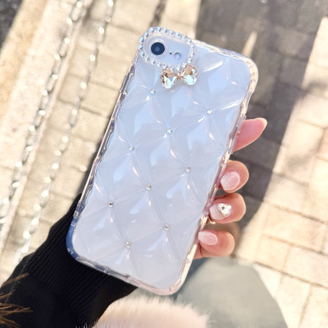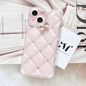 ふっくらとしたキルティングに、きらめくビジューとリボンをあしらった大人ガーリーな魅力あふれる「パフキルテッドリボン iPhoneケース」。